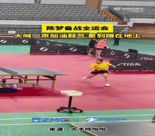全力以赴!备战全运会,陈梦练球累到蹲地上